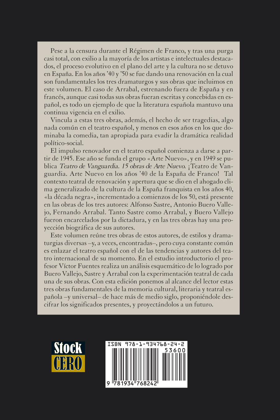 With this edition we offer the US reader three fundamental plays of the literary, cultural and theatrical Spanish –and universal– memory of more than half a century ago, whilst proposing the deciphering of their present meanings and projections into the future.